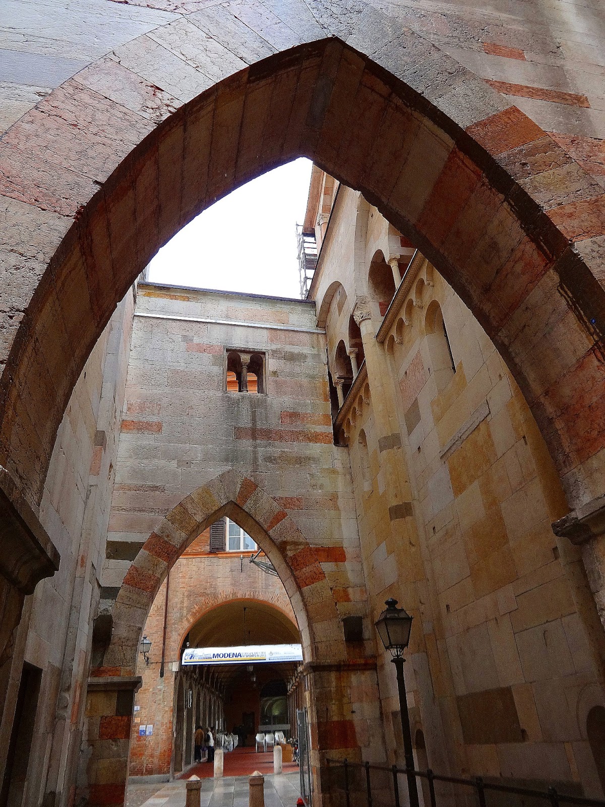 Torra della Ghirlandina, ośmioboczna dzwonnica z XII w. zbudowana została z marmurowych płyt odzyskanych z rzymskich ruin. Nazwa wieży może mieć związek z marmurowymi balustradami, które zwieńczają iglicę niczym girlandy. W średniowieczu wieża pełniła funkcje militarne to z niej strażnicy sygnalizowali konieczność otwarcia bram miasta.