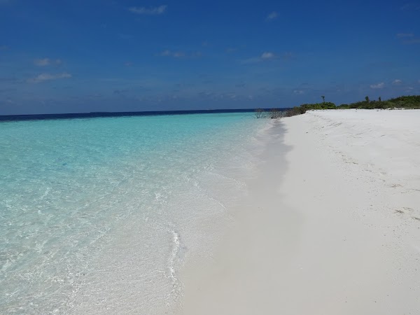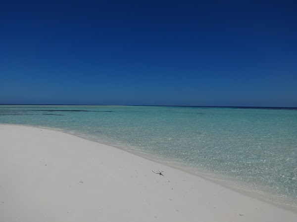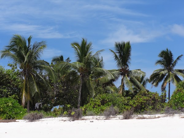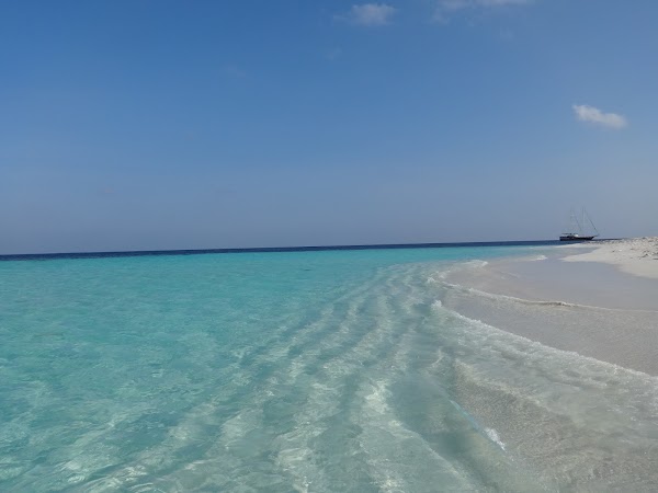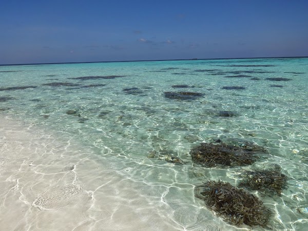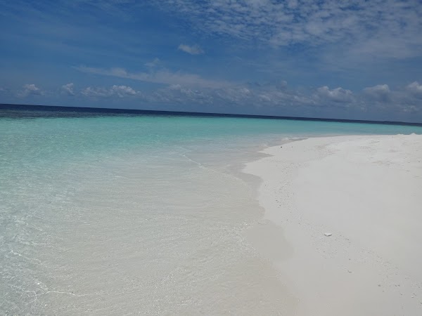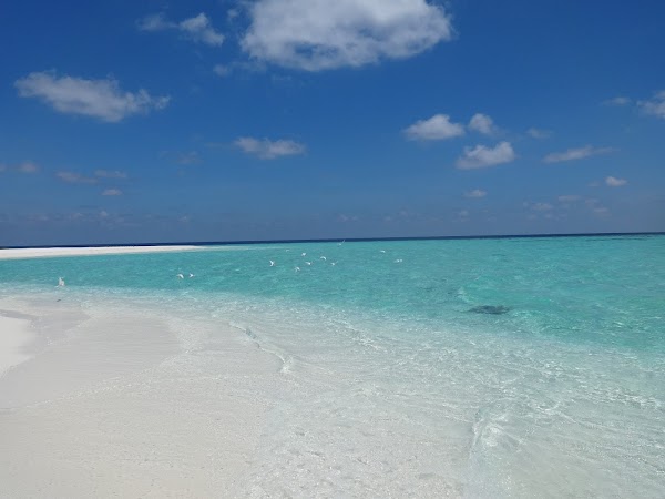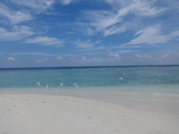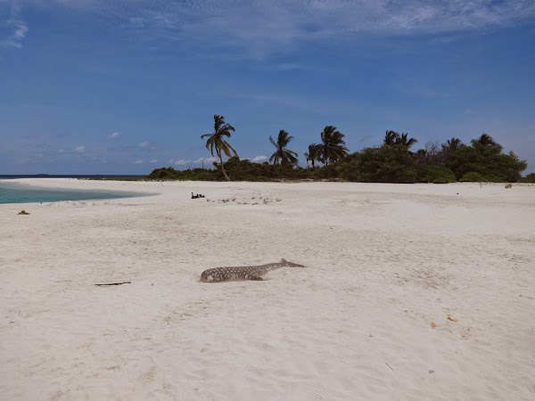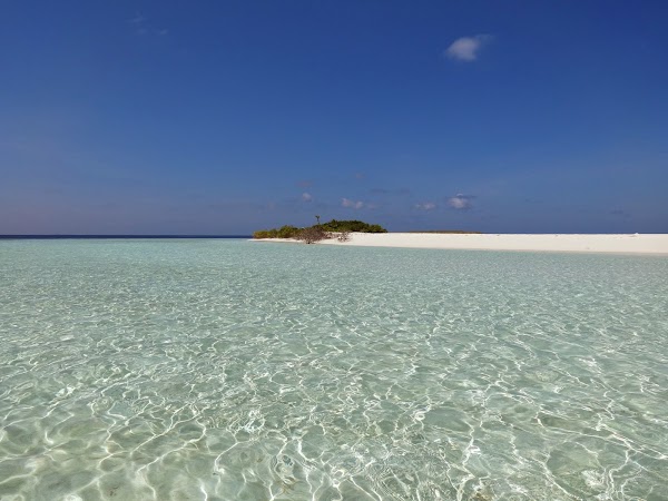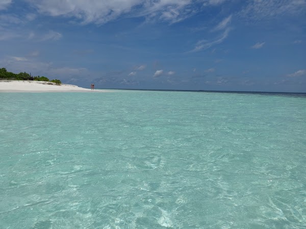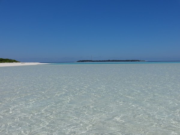 To wyspa, na której plażujemy pierwszego dnia. Korzystamy z niej tylko my, ekipa z Kuri Inn, łącznie jest nas szóstka. Nie ma tu żadnego drzewka, więc o cień trudno. Jednak wyspa urzeka swym miękkim białym piaskiem i turkusową czystą laguną. Jest najładniejsza ze wszystkich trzech. Nie do wiary! Stoję na małej kupce piasku gdzieś na środku Oceanu Indyjskiego, wokół mnie bezkres wody z przewspaniałą morską fauną.