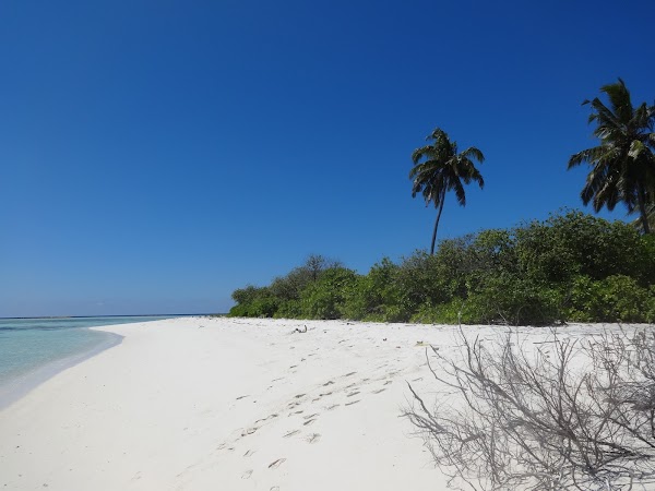 To wyspa, na której plażujemy najczęściej. Pierwszy raz trafiamy tam drugiego dnia, kiedy to okazuje się, że musimy opuścić Aliguerę, bo ktoś ma już tu rezerwację. Przenosimy się na Mirufushi, która jest nieco dalej i jest większa od poprzedniej. Plusem jest cień, przed słońcem można się tu schronić pod palmami.