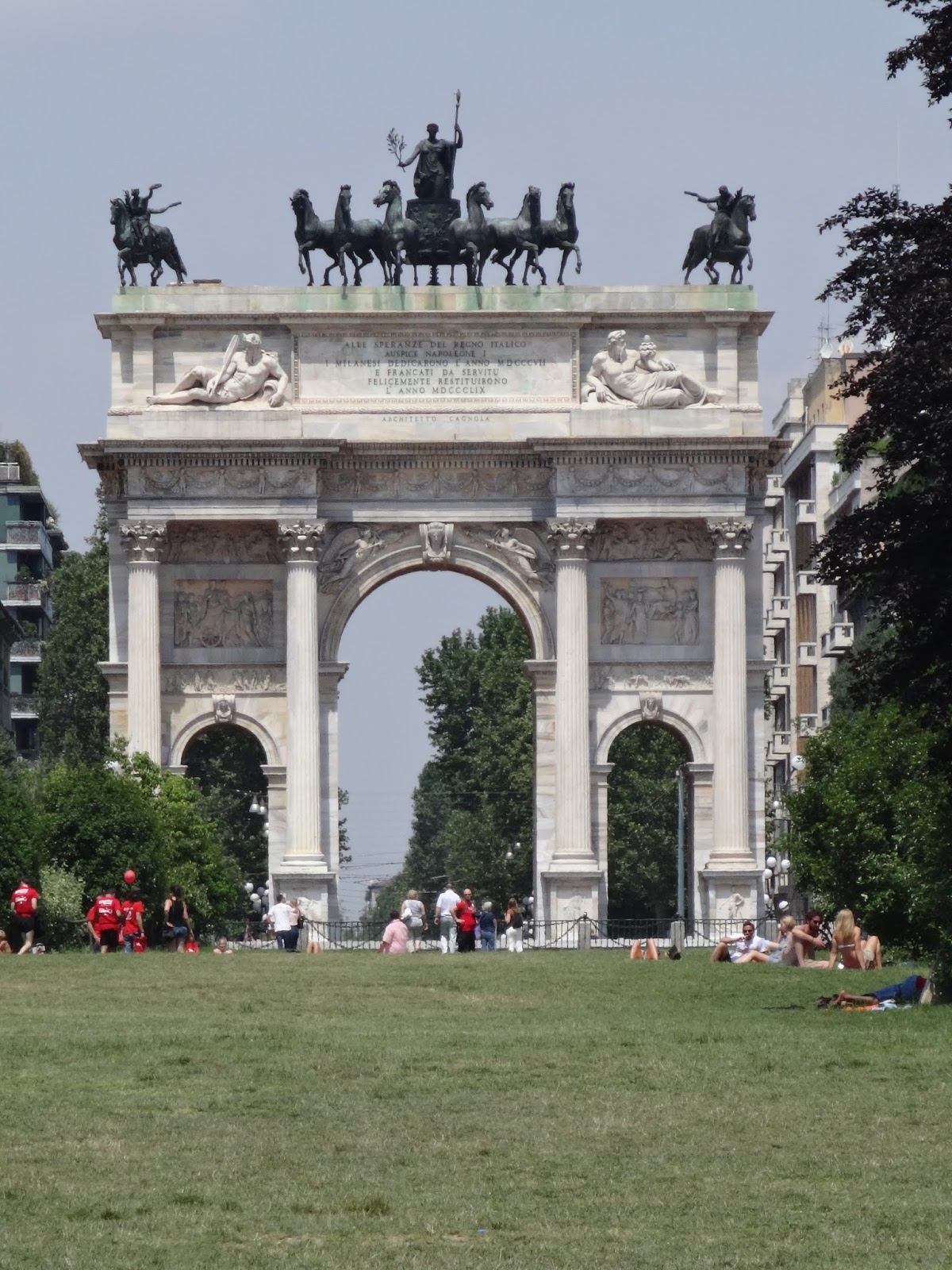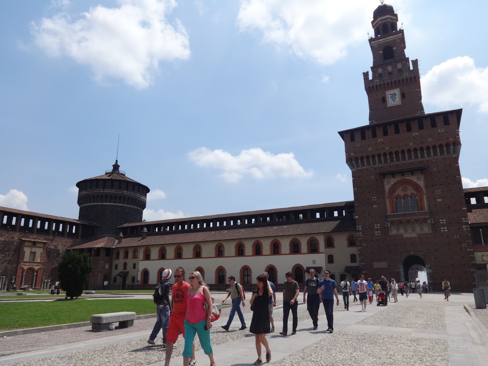 Za zamkiem rozciąga się park Parco Sempione, w którym w ciepłe dni licznie wypoczywają mieszkańcy Mediolanu. Z parku rozciąga się malowniczy widok na Łuk Triumfalny. Park jest naprawdę bardzo ładny, pełno w nim kwiatów, jest staw, w którym pływają rybki oraz… uwaga, żółwie! A co zdumiewa najbardziej? Zatwardziali biegacze trenujący w przeraźliwym upale!