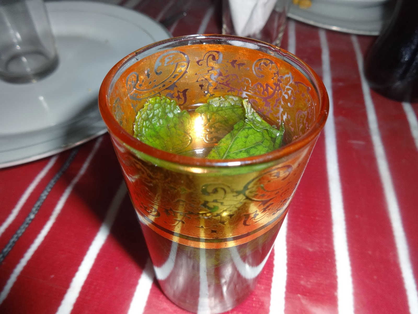 Jednak na kolana powala mnie dopiero tadżin, warzywno-mięsny gulasz ze śliwkami. Jak się potem okaże, będzie to najlepszy tadżin, jaki jadłam podczas mojej całej podróży do Maroka. Na deser dostajemy obiecane ciasteczka oraz tradycyjną zieloną herbatkę z miętą. Wszystko smakuje naprawdę dobrze i to nam wynagradza trochę wygórowaną jak na marokańską kuchnię cenę. Po kolacji postanawiamy się jeszcze trochę poszwendać. Wychodzimy na chwilę poza medynę na Plac Grand Socco. Ludzi tu całkiem sporo, siedzą na trawnikach, ławkach, przy fontannie… Co jakiś czas wydaje się, że dostrzegamy dobrze nam znane wąsy. Nie, niemożliwe, chyba już mamy jakieś omamy. Jakoś tak krok za krokiem wchodzimy w podejrzaną część miasta, ciemno i kiepskie oświetlenie, kręci się tu trochę podejrzanych typków, a nawet w pewnym momencie chyba błyska kosa i wywiązuje się jakaś kłótnia. Przyspieszamy, ale twardo idziemy dalej.