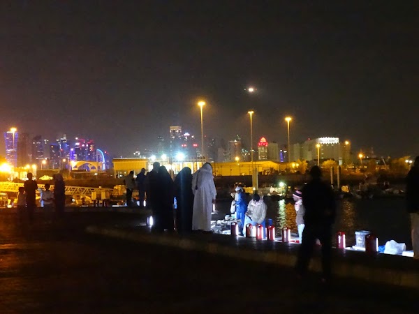 W zasadzie od Muzeum Sztuki Islamskiej zaczyna się słynna promendada Corniche. Widok jest naprawdę piękny, nie tylko strzeliste wieżowce, ale także drewniane łódeczki zacumowane przy brzegu tworzą piękny obraz. Dosłownie co kilka kroków się zarzymujemy i robimy dziesiątki zdjęć. Co jakiś czas ktoś nas pozdrawia i życzy Szczęśliwego Nowego Roku, choć do północy zostało jeszcze parę godzin. W pewnym momencie zagaduje nas jakiś mężczyzna, jak się okazuje Egipcjanin, który pracuje tu jako inżynier. Widać, że szuka kompana do rozmowy, bo idzie z nami prawie do samego centrum. Mówi, że jego rodzina jest w Egipcie, a on przyjechał tu do pracy i akurat na Nowy Rok nie udało mu się pojechać do domu. Rodzina czasami go odwiedza, jednak jest to dość rzadko. Opowiada nam trochę o swojej pracy, o Doha i Egipcie i wypytuje nas o wszystko, to już chyba taka ich mentalność.