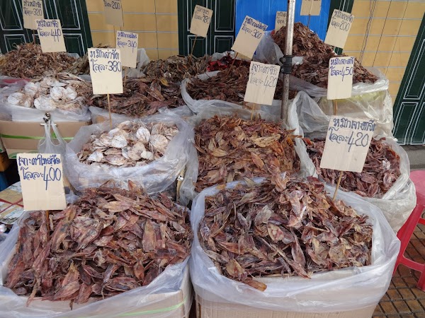 Na targu oprócz owoców kupić można wszelkiego rodzaju pamiątki, przekąski pod różnymi postaciami, jak np. suszona ryba, która zdaje się tu być bardzo popularna.
