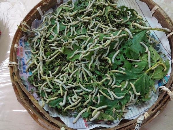 Mamy także okazję zobaczyć małą hodowlę jedwabników. Jedwab produkowany jest przez gruczoły znajdujące się w ciele gąsienicy i wydzielany na zewnątrz przez aparat przędny na spodzie głowy. Na początku gąsienica przędzie małą siateczkę, zwijając jedwabna nić w luźny kokon. W tym momencie siateczka kokonu jest niezbyt gęsta, tak że gąsienicę jeszcze wyraźnie przez nią widać. Gąsienica, aby utworzyć kokon, pracuje obracając się na zmianę do tyłu i do przodu pomiędzy liśćmi. Cały czas jedwab jest wydzielany na zewnątrz przez gruczoły przędne. Twardniejące warstwy jedwabiu powiększają się, a powstały kokon chroni gąsienicę przed drapieżcami. Kokon jest teraz dostatecznie mocny, żeby całkowicie chronić gąsienice podczas przepoczwarzania.