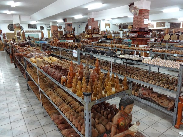 Kolejne miejsce, przy którym się zatrzymujemy to Pon Art Gallery, czyli sklep z wyrobami z drewna. Zajmuje on kilka domków s tylu tajskim. Mamy nadzieję, że zobaczymy tu artystów z dłutem lub innymi narzędziami, jednak czegoś takiego w ogóle nie ma. Jest za to wielki sklep z przenajróżniejszymi produktami. Od malutkich figurek posążków bogów przez fantastyczne bestie po wielkie piękne rzeźbione stoły, szafy i barki. Te ostatnie robią wrażenie, można je tu na miejscu zakupić i od razu zamówić transport do kraju. Tym razem ceny przyprawiają o zawrót główy. Sprzedawane tu współczesne repliki antyków pochodzą z Baan Tawai – niewielkiej wioski na południe od Chiang Mai.