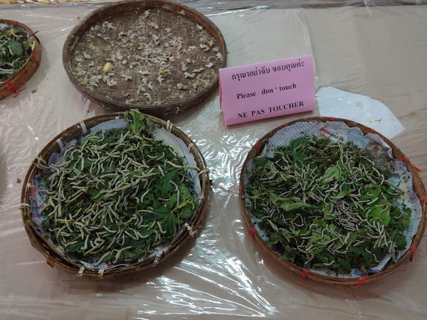 Kolejnym punktem po parasolkach jest wytwórnia jedwabiu, która została założona w 1929 roku. Jest to najstarsza fabryka jedwabiu w Tajlandii. Już na progu wita nas miła pani przewodniczka, która oprowadza nas po całej manufakturze. Dowiadujemy się jak powstaje nić jedwabna oraz możemy namacalnie sprawdzić różnicę między sztucznym jedwabiem sprzedawanym na bazarach oraz tym prawdziwym z najprawdziwszych jedwabnych splotów. Poznajemy w zasadzie cały proces, dzięki któremu otrzymujemy potem wysokiej jakości tekstylia.