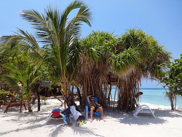 Co można robić na takiej wyspie? Można wygrzewać się w słoneczku, leżaki już czekają, choć przy takim skwarze raczej bym nie ryzykowała, poparzenie murowane, nawet z najwyższym filtrem, a i o udar zapewne nie trudno. Można za to posiedzieć w cieniu, czy też pobujać się w hamaczku lub na drewnianej huśtawce, wpatrując się w bezkresny turkus Oceanu Indyjskiego. Jedyne, co czasem ów spokój zakłócić może, to czarne bzyczące owady, podobno niegroźne, ale ich wygląd sugeruje coś innego. Wyglądają jak czarne duże chrząszcze i muszę przyznać, że to jedyna rzecz na Malediwach, która nie przypadła mi do gustu.
