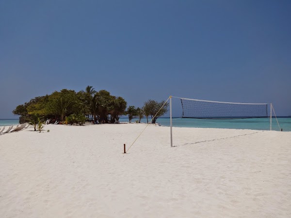 Z daleka wyspa wygląda rajsko… długi cypel białego piasku, idealne miejsce do plażowania. Gdy podpływamy bliżej dostrzegam coś, co wygląda na śmieci. Ale jak to? Resortowa wysepka zaśmiecona? Oczywiście, że nie. To worki z piaskiem umacniające brzeg, inaczej ocean dawno by ten skrawek lądu gdzieś przemieścił lub całkiem rozmył. Fakt, to całe umocnienie robi niezbyt dobre wrażenie, ale wyjścia nie ma, tak być musi.