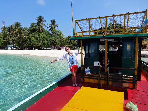 Ostatni dzień naszego pobytu na Malediwach postanawiamy spędzić na tzw. picnic island. To mała bezludna wysepka w pobliżu Fulidhoo, należąca do jednego z resortów. Arif od początku nam powtarza, że koniecznie musimy tam popłynąć, a i opinie osób, które już tam były również za tym przemawiają. Tym razem wybieramy się tam w towarzystwie nowych sąsiadów, co ciekawe także z Rosji. Do Thundi przyjeżdża rodzinka z dwójką całkiem już sporych dzieci oraz przyjacielem z Kazachstanu. I jak tu nie wierzyć w stereotypy! Już od samego początku pani w kapeluszu narzeka na warunki noclegowe i wspomina, jak to było poprzednim razem. Marzą jej się luksusy z basenem i wszelkie udogodnienia, z nostalgią wspomina pobyt w Dubaju, gdzie wszystko było na bogato. Za cały pobyt płaci oczywiście ojciec rodziny. Pani w kapeluszu, spacerując uliczkami, a właściwie główną ulicą na Fulidhoo, z nadzieją wpatruje się w sklepowe wystawy, co by zaleźć jakieś ładne modne ciuszki. Raz, kiedy wracamy z właśnie zakupionymi pamiątkami, wypytuje nas o spódniczki lub inne części damskiej garderoby. Podczas naszych rozmów często opowiada o dobrych zakupach w Poznaniu, w Krakowie i żali się nieco na Warszawę. Męskie rozmowy wyglądają równie ciekawie, szczególnie te prowadzone z Arifem. Pan z Kazachstanu zawzięcie tłumaczy coś naszemu gospodarzowi w swym ojczystym języku i cały czas myśli, że ten w końcu coś zrozumie. Co by zacieśnić więzy, wyciąga zdjęcia swej rodziny. Tutaj szczególną uwagę zwraca na syna, bo rosły to i silny chłop, i jak będzie coś nie tak, to on ty przyjedzie rozprawić się ze wszystkimi. Arif tylko lekko się uśmiecha i cierpliwie słucha dalej:)