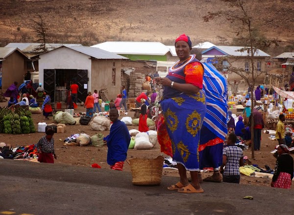 Po drodze trafiamy także na masajski targ, gdzie właśnie czerwień dominuje w krajobrazie. Joseph mówi, że możemy się tu zatrzymać, jeśli chcemy, jednak my zniecierpliwieni długą jazdą chcemy jak najszybciej dotrzeć na safari. Niemniej propozycja jest nas wyraz kusząca, bo prawdziwy masajski targ musi kryć w sobie nie lada lokalny folklor.