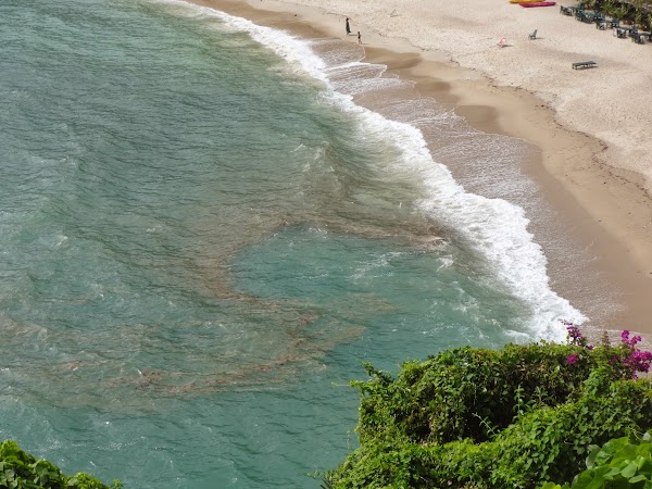A plaża? No właśnie. Z góry wyglądała jak prawdziwy kawałek raju otoczony zieloną dżunglą. Z bliska niestety już nieco mniej. Nie zrozumcie mnie źle. Było naprawdę ładnie. To, do czego chcę się przyczepić to woda i jej czystość, i to, co wyrzucałą na brzeg. Nie ukrywam, że po krystalicznie czystej wodzie na Phi Phi, tutaj oczekiwałam czegoś podobnego. A tu wręcz przeciwnie. Woda mętna i jakaś taka nie zachęcająca do kąpieli, do tego całkiem spore fale. Późnym popołudniem do zatoczki zarzucało całkiem spore ilości śmieci, które potem gromadziły się na plaży. Dziwny widok, coś nie pasowało… z jednej strony miało się poczucie obcowania z nieskażoną naturą, z drugiej, nawet tu dosięgły nas brudy cywilizacji. Szkoda…