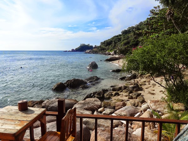 Na pierwszy ogień poszła Koh Phangan. Jako że zawsze staram się wybierać miejsca bardziej ustronne, z małą ilością turystów, tak i tym razem zatrzymaliśmy się na mniej turystycznej części wyspy, a mianowicie na wschodnim wybrzeżu. Na nocleg wybraliśmy Plaa’s Thansadet Beach Bungalows. Cena bardzo rozsądna jak na Tajlandię (1000 THB za dwuosobowy bungalow za noc) i ten rajski widok na plażę z usytuowanej na skale restauracji. Pierwsze wrażenie – bosko! Domek przestrzenny, balkon z hamakiem i widokiem na zatokę, iście tajski klimat. Właściciele przemili i bardzo pomocni. Restauracja klimatycznie urządzona z pysznym, jak się wydawało, jedzeniem. Dopóki zakrapianym polskim alkoholem, dopóty wszystko wydawało się być w jak najlepszym porządku.